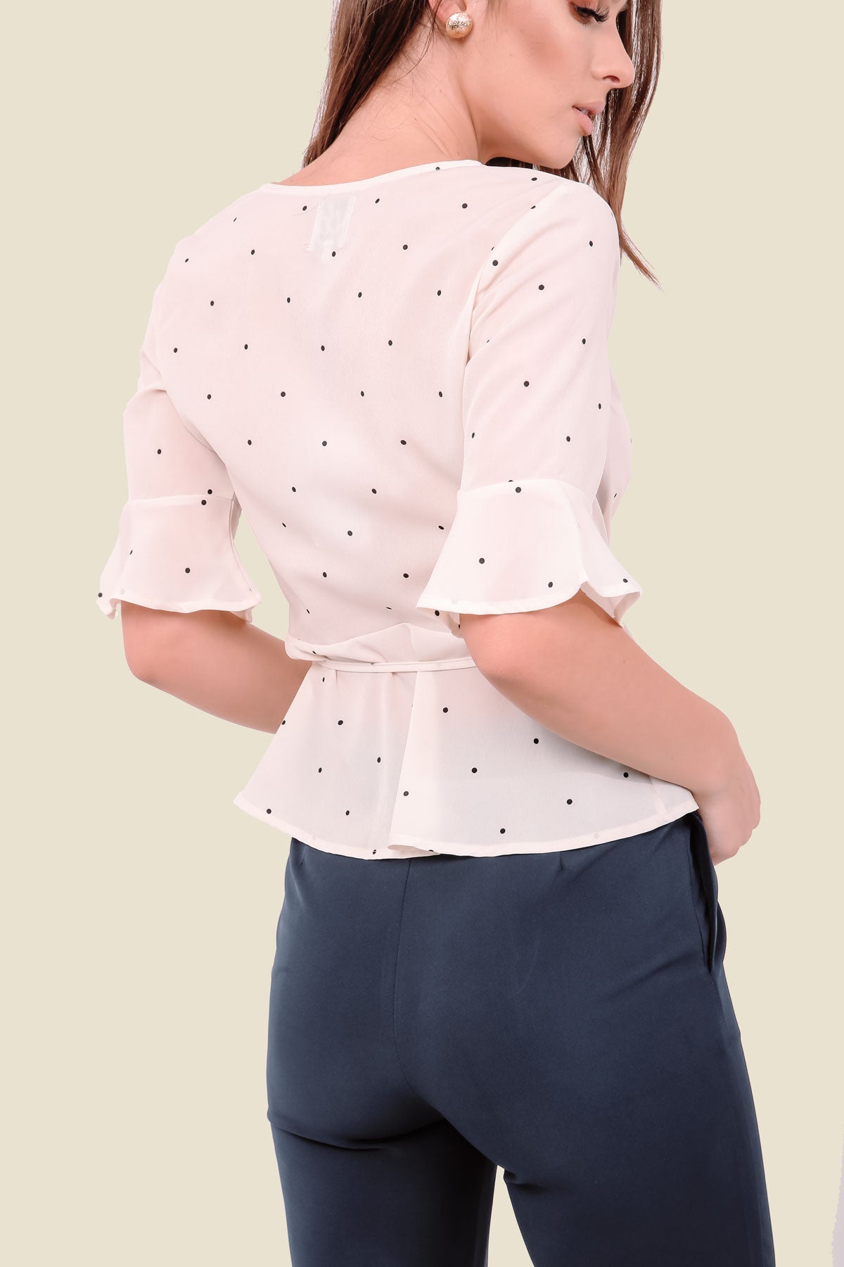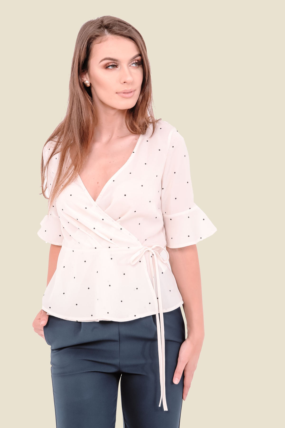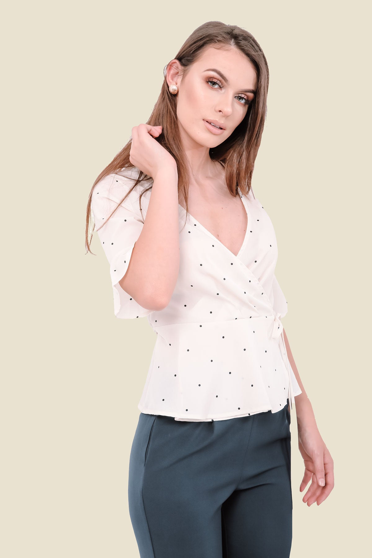Cream Polka Dot Wrap Top